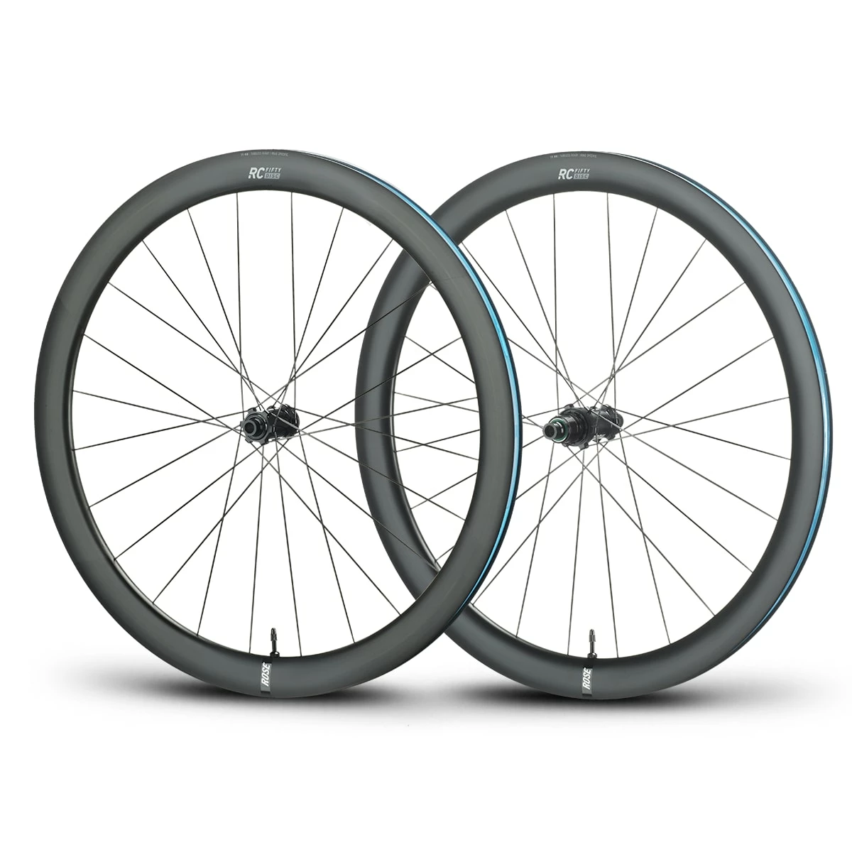 The elegant carbon rims of the ROSE RC-Fifty Disc road bike wheelset were developed completely in-house and have a special construction that makes them very light and yet stable and resistant. Of course, we follow the trend towards wider tyres and therefore gave the rim a full inner width of 19 mm and “tubeless-ready” compatibility – no upgrades needed. You can also ride the RC-Fifty carbon wheels of course in a conventional way with conventional tyres and inner tubes.