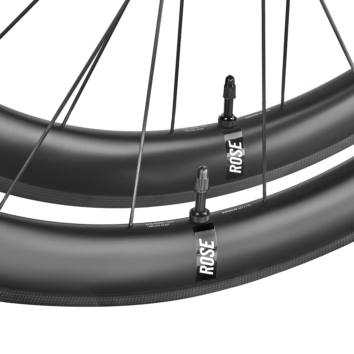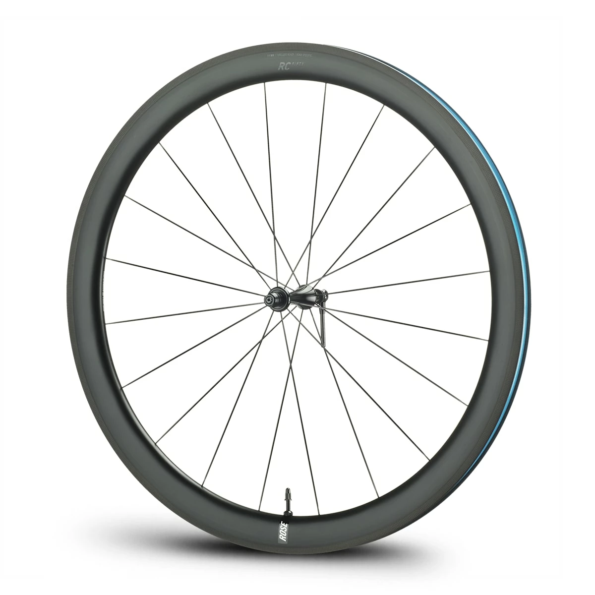 The elegant carbon rims of the ROSE RC-Fifty Rim road bike wheelset were developed completely in-house and have a special construction that makes them very light and yet stable and resistant. Of course, we follow the trend towards wider tyres and therefore gave the rim a full inner width of 19 mm and “tubeless-ready” compatibility – no upgrades needed. You can also ride the RC-Fifty carbon wheels of course in a conventional way with conventional tyres and inner tubes.