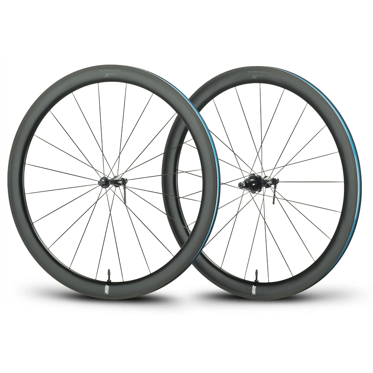 The hand-laced carbon wheels of the ROSE RC Rim series are the current reference in terms of aerodynamics, performance and weight from ROSE Bikes for your road bike with classic rim brakes!