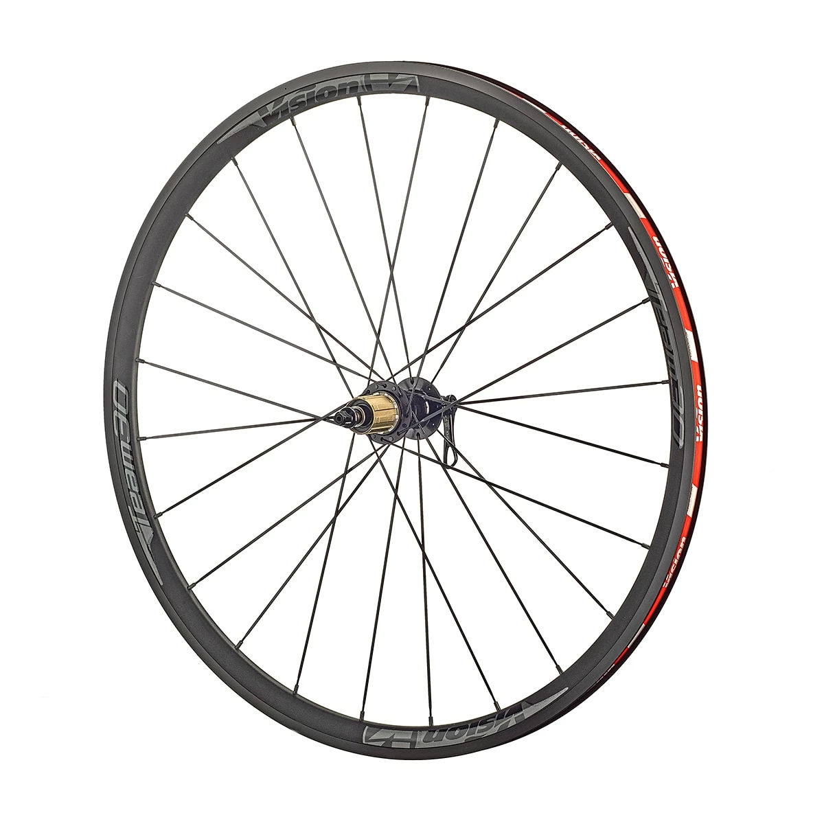 The Vision Team 30 wheelset for rim brakes comes up with features that make it perfectly suitable for road bike newcomers. The anthracite semi-aero rims are CNC-machined to guarantee a smooth rim flange and thus best control at high speeds. They are tubeless ready and hand-laced with aerodynamic J bends on smooth-running hubs with sealed cartridge bearings. The number of spokes and the 2-cross lacing on the drive side of the rear wheel offer enough stiffness for steep climbs and windind slopes.